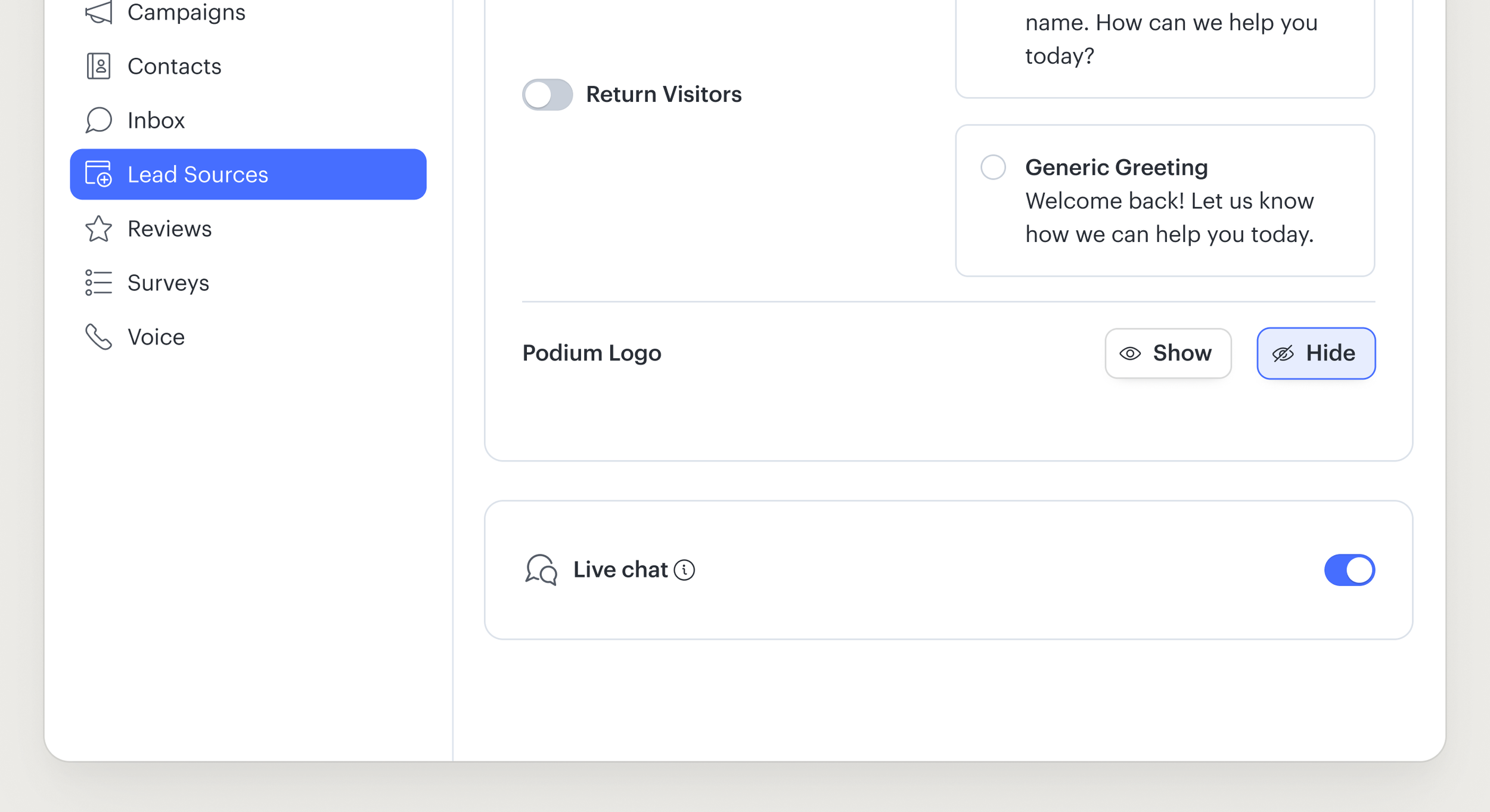 Brought synchronous live chat into Podium’s SMS-first system, without breaking flows or fragmenting the experience.